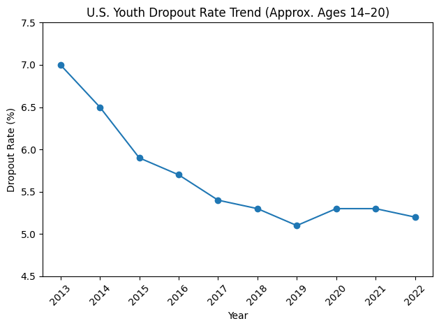 Over the past decade, national youth dropout rates have remained around 5%, representing millions of young people disconnected from education.
